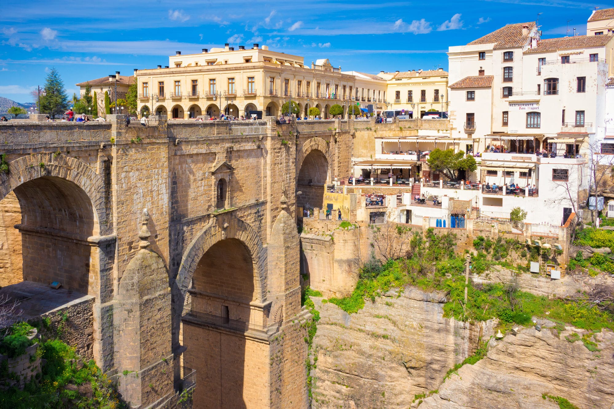 Desayuno incluido y salida hacia uno de los pueblos más originales de los pueblos blancos de Cádiz, donde destacan sus casas construidas bajo las rocas Tiempo libre para pasear por sus tiendas, por la Villa y para asomarnos por sus miradores, desde donde obtendremos la mejor panorámica. Seguidamente nos trasladaremos a Ronda Tiempo libre para la comida (por cuenta del cliente). A la hora acordada, realizaremos la visita de la ciudad acompañados de guía oficial, cuyo casco antiguo, declarado Bien de Interés Cultural ,tiene una disposición típica medieval e importantes reminiscencias árabes Regreso a hotel, cena incluida y alojamiento.