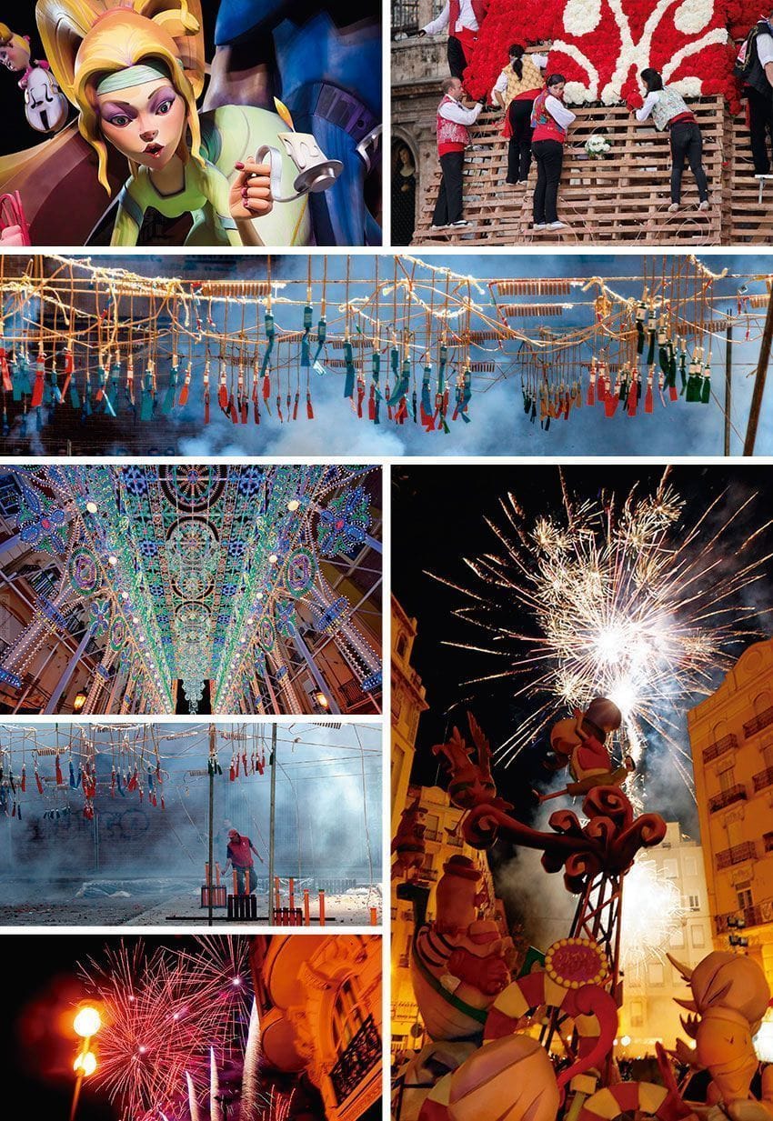 Las Fallas, son unas fiestas internacionalmente conocidas y declaradas de interés turístico internacional. Es la fiesta del fuego y la pólvora. Miles de kilos de pólvora son empleados cada año en fuegos artificiales o castillos, mascletàs y por todos los valencianos, sobre todo los más jóvenes, para dar sonido y color a su fiesta.
